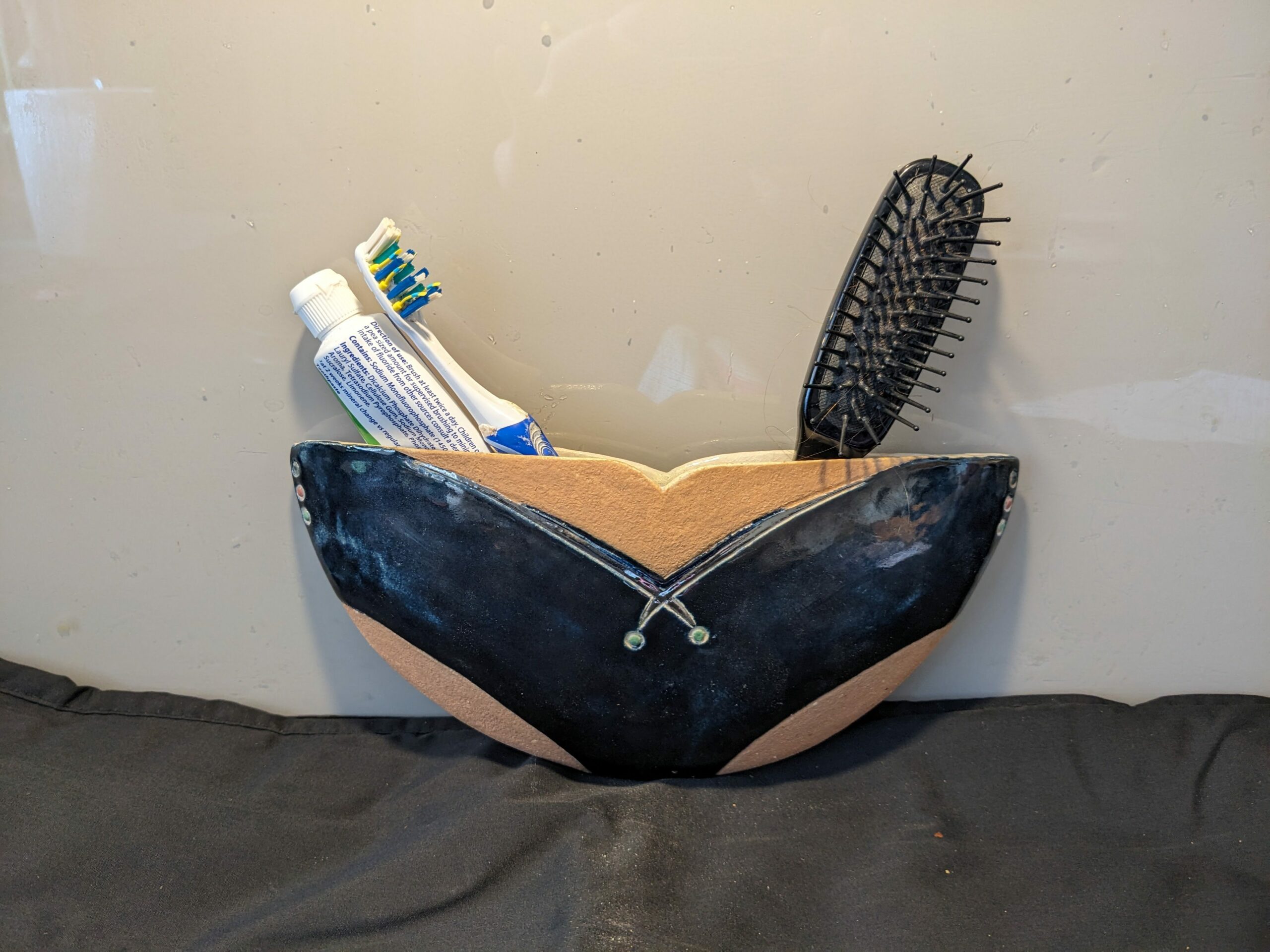 Stoneware ceramic with platinum detail. 12 hi x 22.5 wi x 4cms deep